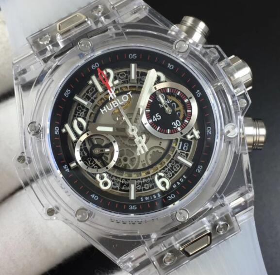 今日の時計作りで、透明シェルデザインは、完全に技術的な進歩と技術成果を具現化、より多くの成功した典型的なスタイル、完全に透明時計を紹介するために、今日ウブロビッグバン411.JX.4802.RTプレイテーブルが含まれていますこの全面的に透明なビッグバン時計、スタイリッシュで美しく見え、あらゆるディテールは非常に繊細なデザイン美しさがあります。