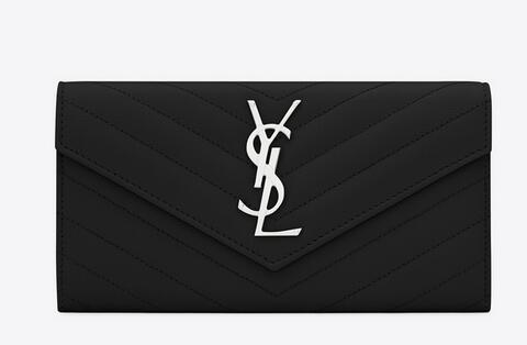 モノグラム・サンローラン フラップコピーウォレット(ラージ/ブラック/グレインパウダーテクスチャード キルティングレザー)